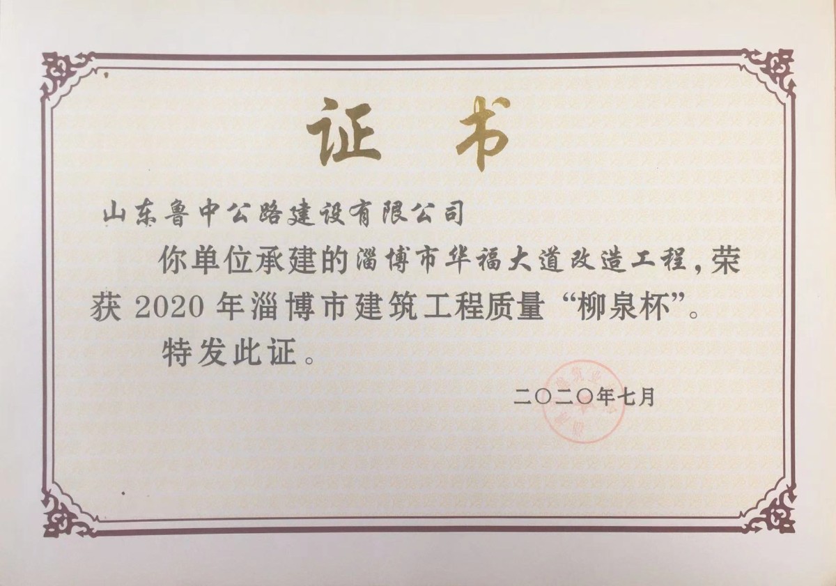 - 2020年淄博市建筑工程質量“柳泉杯”