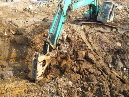 張博路分離立交橋東西方向橫跨孝婦河,2#-5#墩柱位于河道之中,按照圖紙設計要求,開挖深度應為河道水平面下挖4—6米。河道地質復雜,多為卵石流沙層,具有硬度大流動性強的特點。