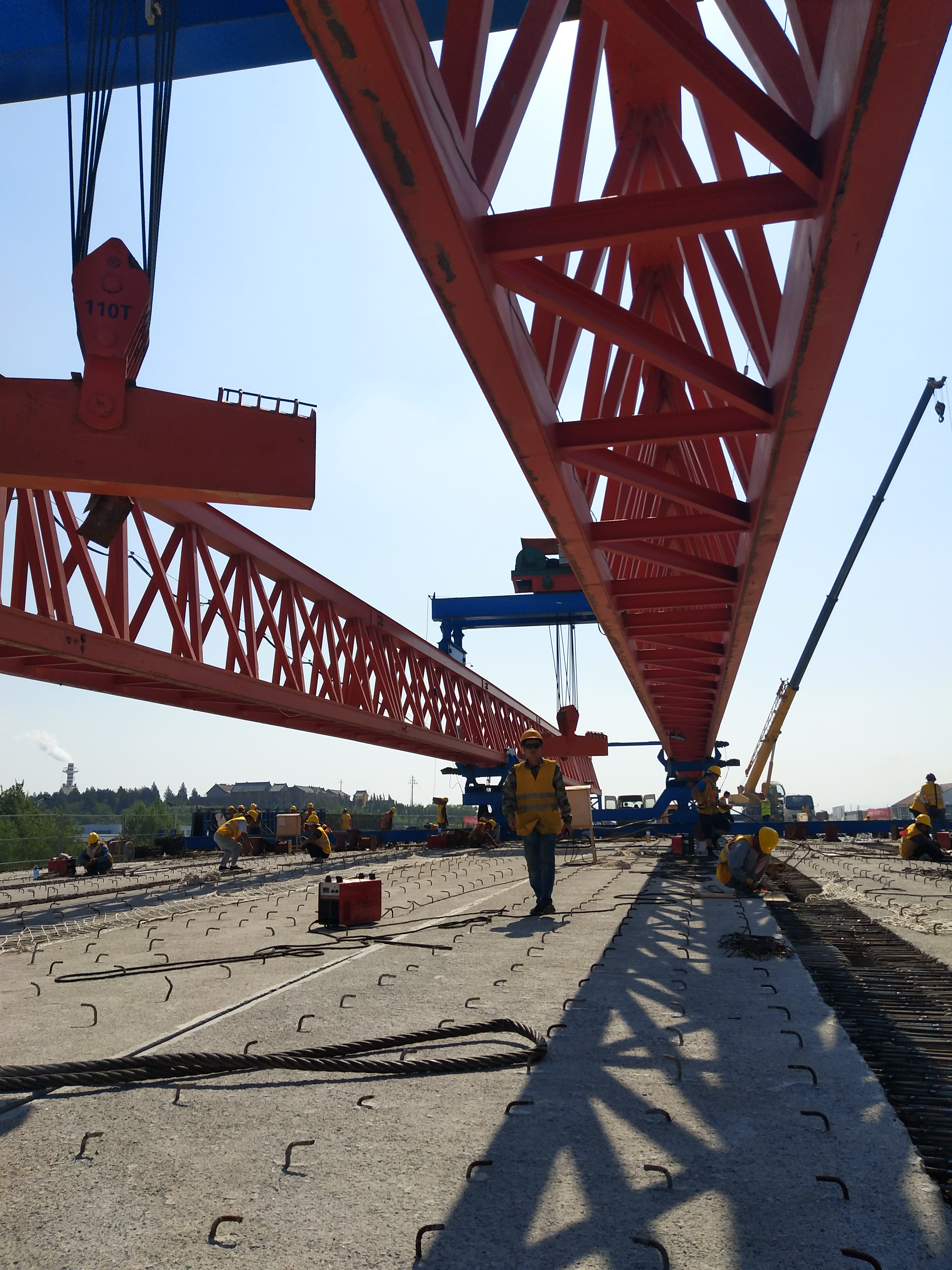 張博路分離立交橋施工的最大難題便是涉鐵施工,鐵路各個部門錯綜復雜,地下地上管線錯綜盤繞,各個部門需要申請配合協商。面對種種困難我們臨危不懼,從最開始地下管線排查,鐵路道口路燈拆除,鐵路上方高壓線下降等等,各個工作都是相互溝通,相互配合,合理安排,統籌規劃。發揚不怕吃苦不懼困難的精神,每天都有進展,重重困難各個擊潰,最終實現張博路分離立交橋全橋梁板吊裝完成。