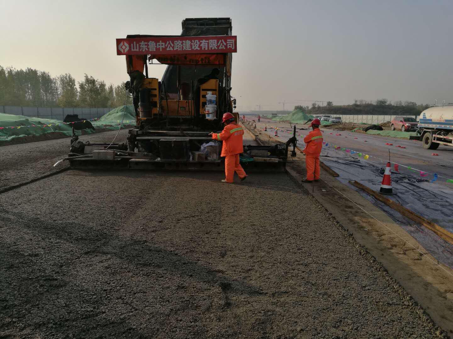 高鐵新城站東路水泥穩定碎石基層試驗段成功攤鋪