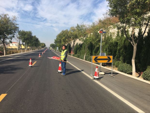 擺放減速標志、反光錐、爆閃燈等安全設施