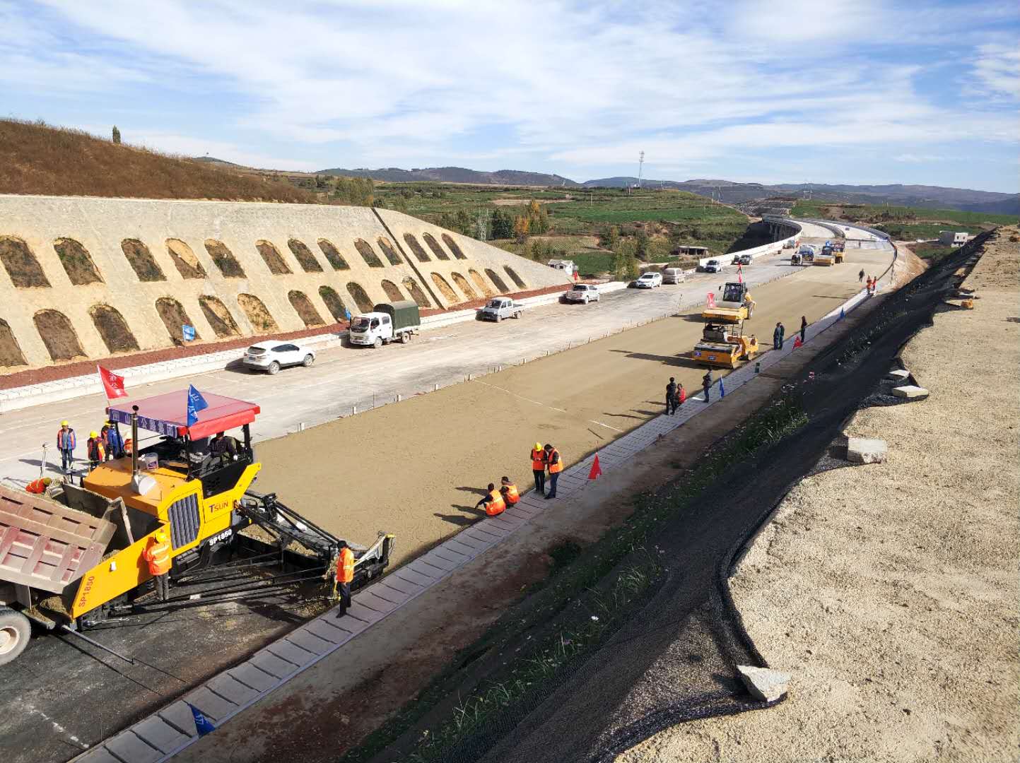 在經過一天的緊張準備之后,11月15日上午8點半,底基層試驗段正式開始施工。現場攤鋪機、壓路機配合使用,施工人員嚴格按照工藝要求,邊鋪邊測量,邊鋪邊調整,及時總結數據,做到施工標準化、規范化,路面咨詢單位和中心試驗室全程跟蹤現場檢驗。本次水穩底基層試驗段位于K147+430~K148+035段,全長605米,厚度為26厘米。在攤鋪施工過程中,項目部各科室緊密配合,自卸車不間斷輸送混合料,鋼輪、膠輪壓路機組合式碾壓,各工序嚴密銜接,經過近11個小時不間斷作業,我部于當天順利完成該試驗段施工任務。