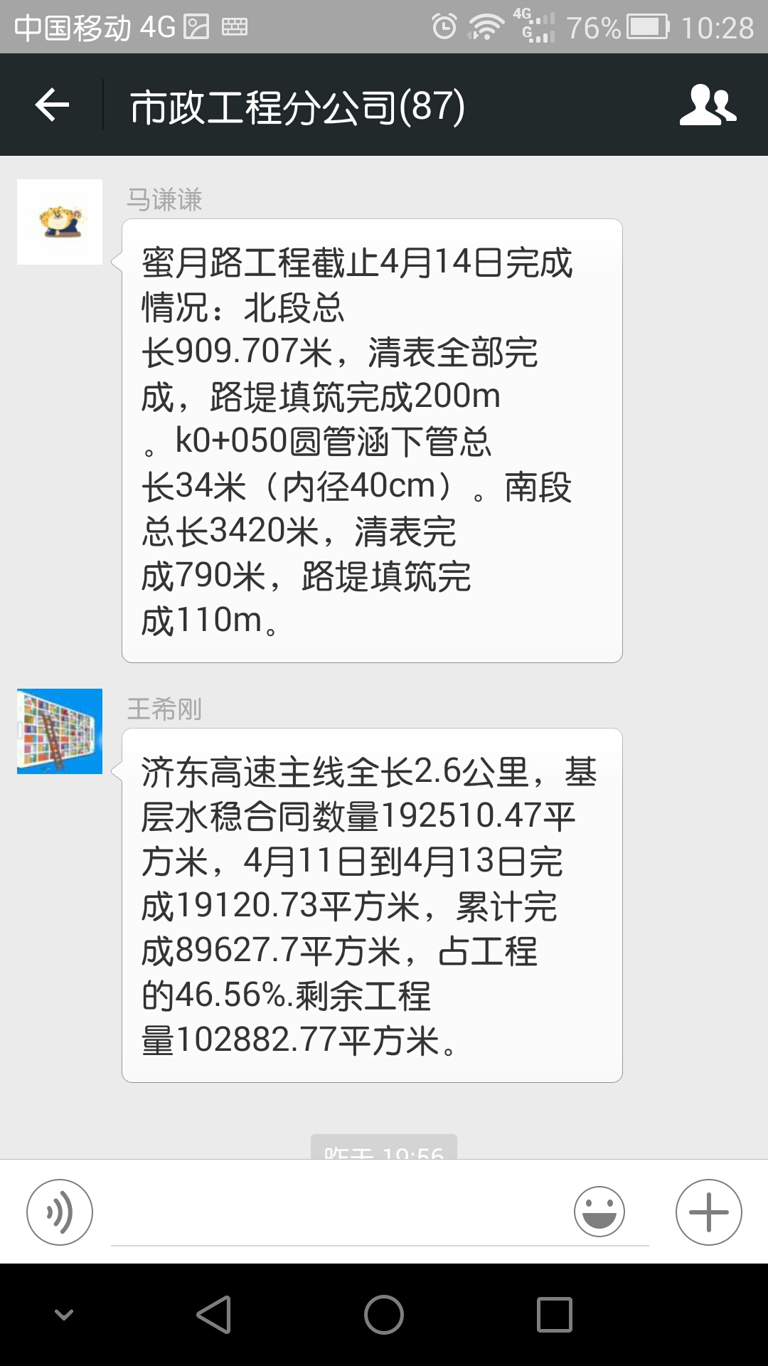 市政工程分公司于近期通過微信這一網(wǎng)絡(luò)社交app搭建了我們自己的工程信息實時分享平臺。成立分公司后,在分公司領(lǐng)導(dǎo)授意下,原淄川拌合站微信群擴(kuò)大為市政工程分公司信息群,隨著各個工地工程的陸續(xù)展開,各種工程信息、進(jìn)展動態(tài)源源不斷的推送至這一平臺,打開界面,總能看到領(lǐng)導(dǎo)們伸出大拇指的點(diǎn)贊和諸如“注意安全,抓好質(zhì)量”之類的耳提面命,我想這就為奮戰(zhàn)在一線的同仁們送去了一股暖流,也有同事們發(fā)來的施工照片、視頻、技術(shù)資料、實時數(shù)據(jù),這都為日后的發(fā)展積累了經(jīng)驗、儲備了技術(shù)。另一方面,微信平臺也是我們轉(zhuǎn)變思想、改革宣傳方法的一項舉措,我們主張有工作就要有宣傳,宣傳材料作為工作成果上傳,讓大家了解自身崗位、了解自身光輝。通過這種形式,大大提升了員工參與工作的積極性,工作效率明顯提高。