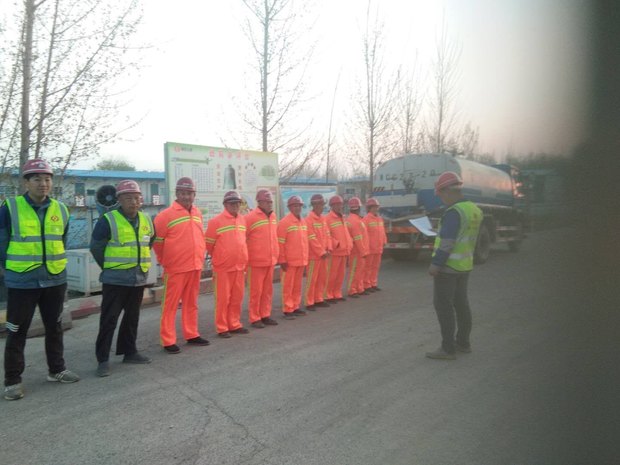 2019年4月13日養護工程分公司瀝青拌合站鍋爐正式點火開始拌料。拌合站站長、操作人員及民工隊伍集結一起利用早前時間開起了班前會議。參會人員身穿反光衣,頭戴安全帽,站長則是拿出提前準備好的班前會議內容給大家說工作、講安全,整個過程中沒有說教,沒有訓斥,用簡潔快速的方式進行相互通氣、交代,明確每個人應該干什么,應該注意什么。