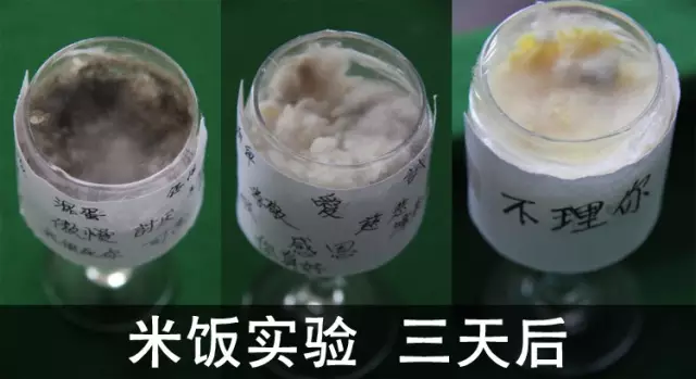 無論是日、英、德任何一種語言,當水看到"謝謝"后,其結晶都非常整齊而美麗。與此相反,不管是哪個國家的語言,只要是聽了帶有辱罵及攻擊性的,例如"渾蛋"等字眼的水,便都散亂得無法形成結晶,而且樣子還慘不忍睹。