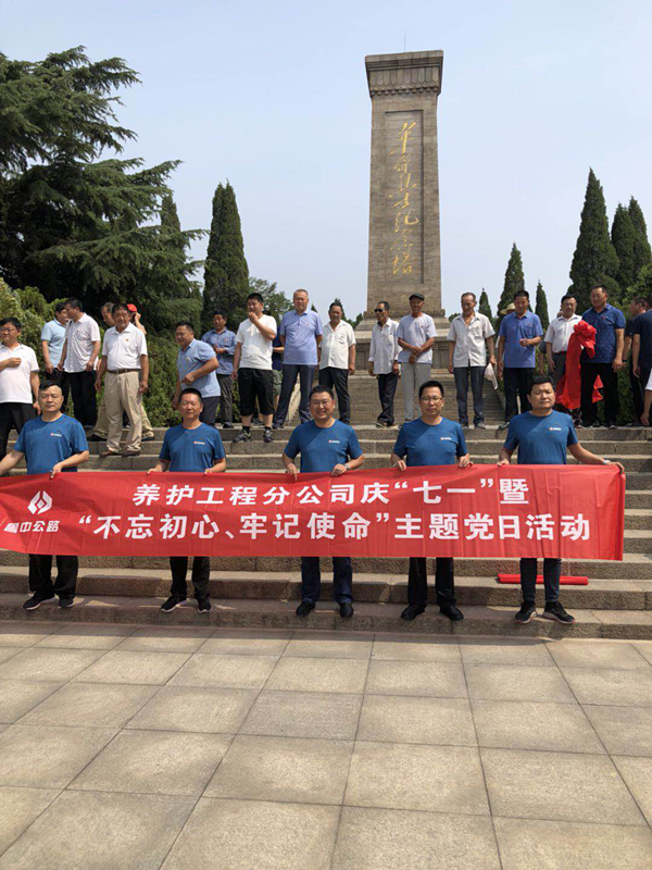 養護黨支部黨員在萊蕪戰役紀念碑前合影。
