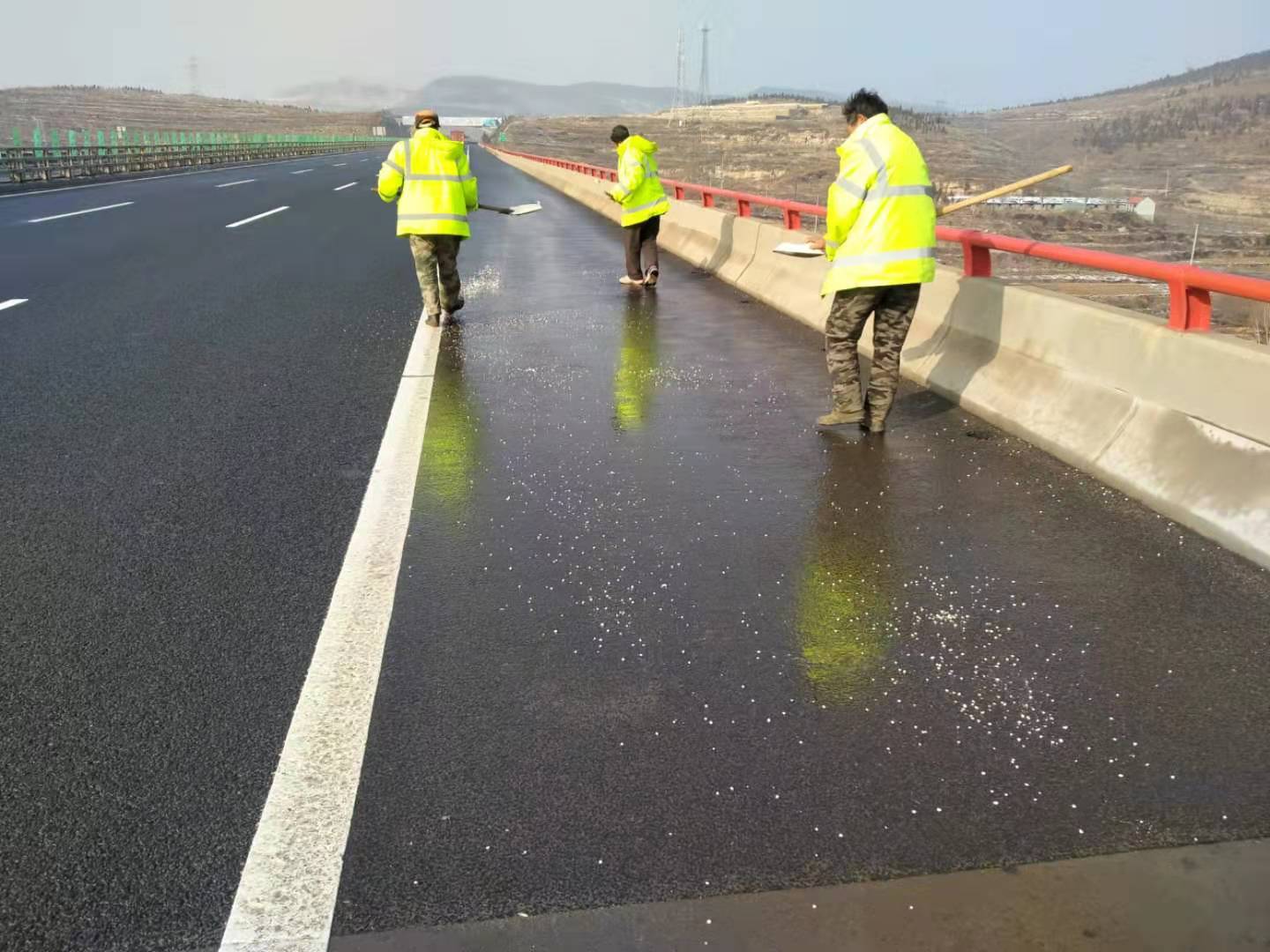 與此同時(shí)我們青蘭小修的工作人員便開(kāi)始進(jìn)入了應(yīng)急模式,對(duì)積雪的路面進(jìn)行清理和對(duì)路面灑融雪劑的作業(yè),為了防止在高速上因路滑發(fā)生意外,所有工作人員全部都爭(zhēng)分奪秒的進(jìn)行著工作。