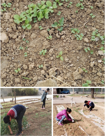 到了監(jiān)理處,看到院子里確實不少草也挺高了,還拿著大剪刀剪了剪拔高的草,不錯,還挺好用的。沒一會監(jiān)理處的人來了,領(lǐng)著我們?nèi)ズ笤海笤菏且黄藞@子,原來是拔菜地里的草,大剪子是用不到了。人家告訴我們怎么拔草。我蹲下看著綠油油的菜或者草,傻傻分不清楚,人家說這是黃瓜秧苗,那個就是草,可我看著咋都覺著一個樣。突然想起老公之前說,你們城市奧特曼是體會不到我們農(nóng)村葫蘆娃在麥地長大的樂趣的,一個囧字涌上心頭,終于分清了黃瓜秧苗和草的區(qū)別。好在我們司機(jī)之前去拔過野菜,車上有兩把鏟子,拔草的活頓時輕松了不少,當(dāng)然再輕松也抵不過工作量的大。