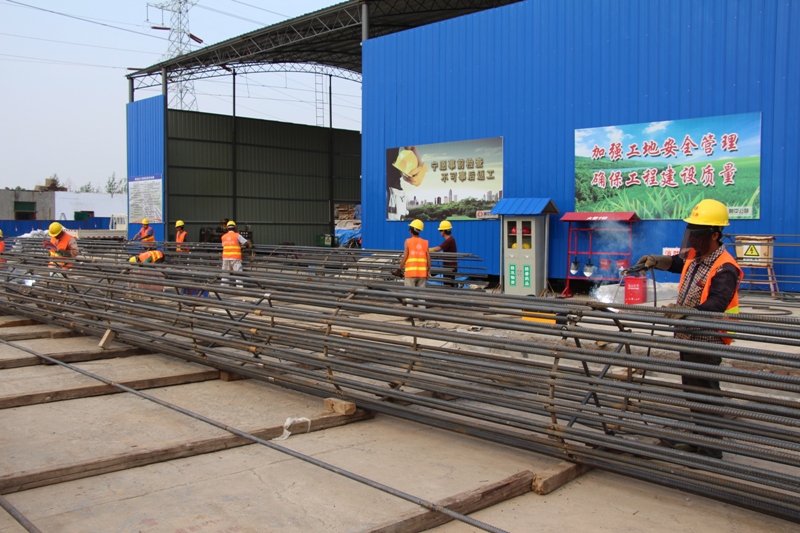 5月25日進駐現場,立即開始清理建筑垃圾,平整場地,搭建板房,硬化地面……經過了不到半個月的時間,舊貌換新顏,一片嶄新、美觀、整潔的項目部辦公生活區展現在人們面前,屋脊上“魯中公路”四個紅色大字在夜晚熠熠發光,照亮整個院落。同時,鋼筋加工棚順勢拔地而起,筑島圍堰逐步向孝婦河中心推進,鋼筋原材料進場,鋼筋籠焊接也在悄然展開,這似乎在醞釀著什么,又像是在等待著什么。