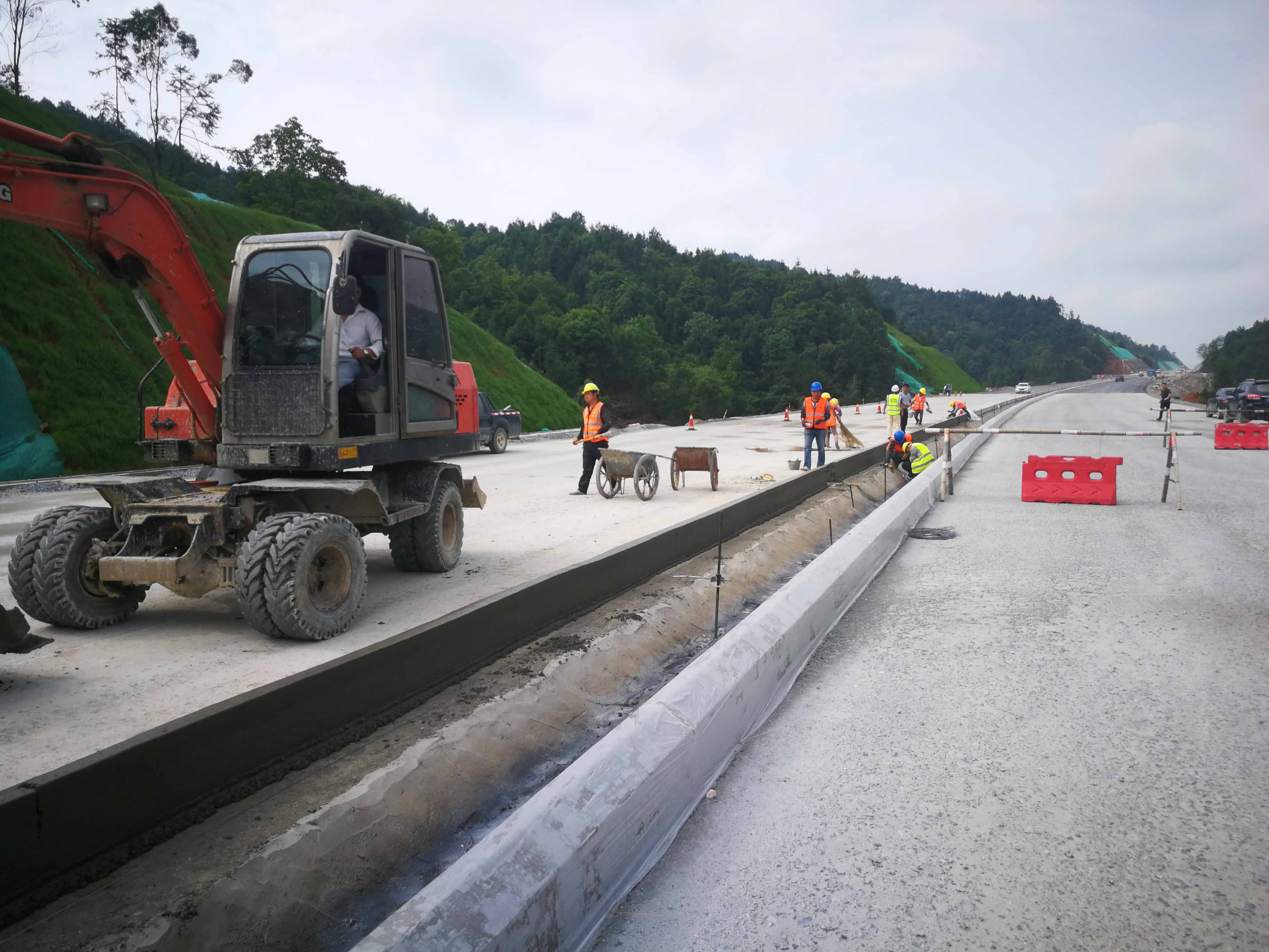 為保證路緣石及縱向排水溝施工進度和質量,我部采用混凝土滑模施工工藝進行路緣石和縱向排水溝施工鋪筑。為了確定滑膜施工機具的適應性及施工工藝,為以后大面積施工提供經驗及其相關數據,我標段在主線K54+000-K54+340處進行了路緣石試驗段施工,施工長度為340m。試驗室通過多次試驗確定最佳生產配合比,項目部組織相關的管理、技術及施工人員對設計圖紙、工程數量等進行了復核,熟悉設計文件,并召開了技術、安全、環保交底會。相關技術負責人在施工現場對現場施工人員進行了詳細的技術、安全、環保交底,包括施工分組、工作職責,質量控制標準、施工注意事項等。