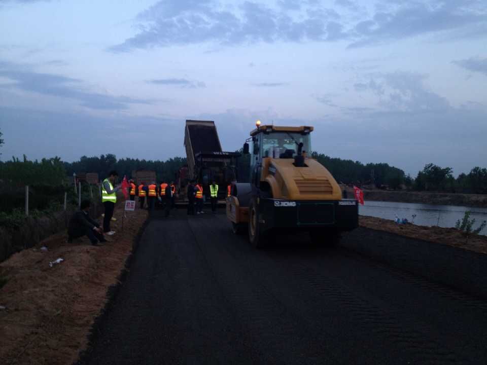 郯城縣白馬河左右堤(小馬頭橋~捷莊閘)路面建設(shè)工程,全長(zhǎng)34km。自2016年4月12日開工以來,在郯城縣政府、郯城縣交通局、監(jiān)理單位以及公司領(lǐng)導(dǎo)的大力支持下,工程順利開展,各項(xiàng)工作有條不紊的進(jìn)行。截止2015年7月25日,工程任務(wù)中路基挖除、換填、水泥穩(wěn)定碎石基層、瀝青砼下面層工作已全部完成。另外,瀝青砼上面層和路緣石也已完成絕大部分。