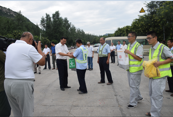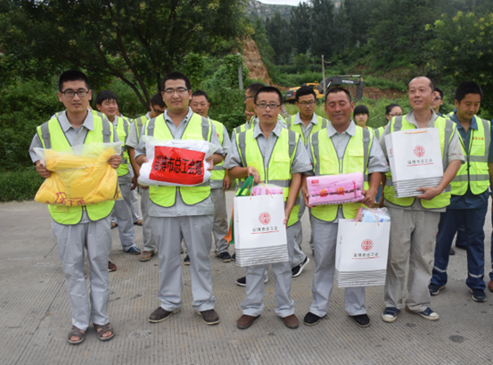 最后,劉蓬、翟乃利、王興等領導親自向一線施工人員發放各類防暑降溫物品,將清涼送到每位員工心中。