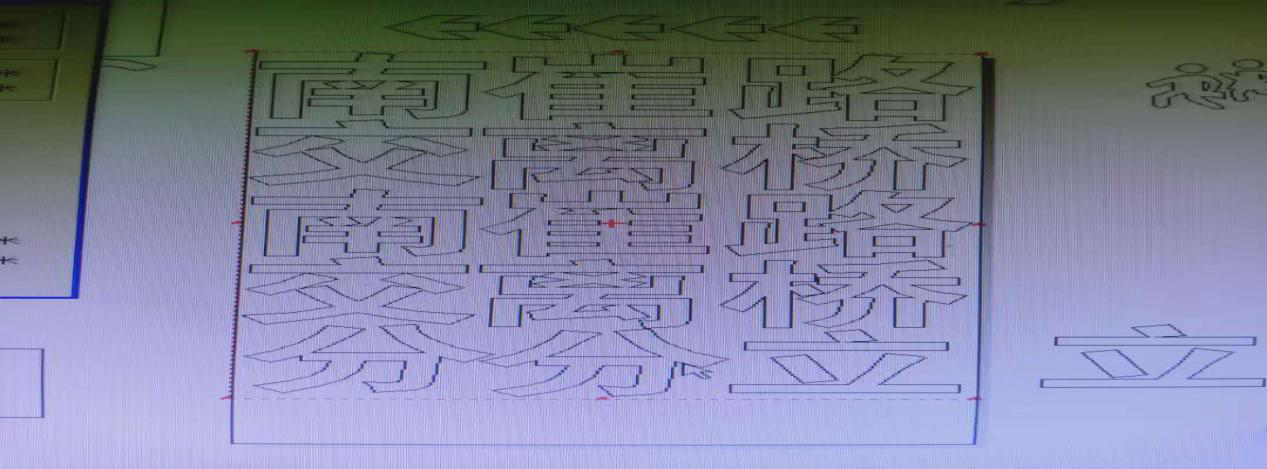 這樣的漢字是八角指示牌的內容。正好這批任務和另一批警示樁的刻字任務同時交到刻字室。結合兩項任務,最終選定了先把八角牌子的內容排好版,然后利用字與字的空隙再把警示內容加進去的方案。方案送到交安分公司領導審閱的時候,領導給予了我高度肯定和贊揚。這樣,我不但把兩個刻字任務同時高質量圓滿完成了,也收獲了工作的成就感,及節約帶來的幸福感。