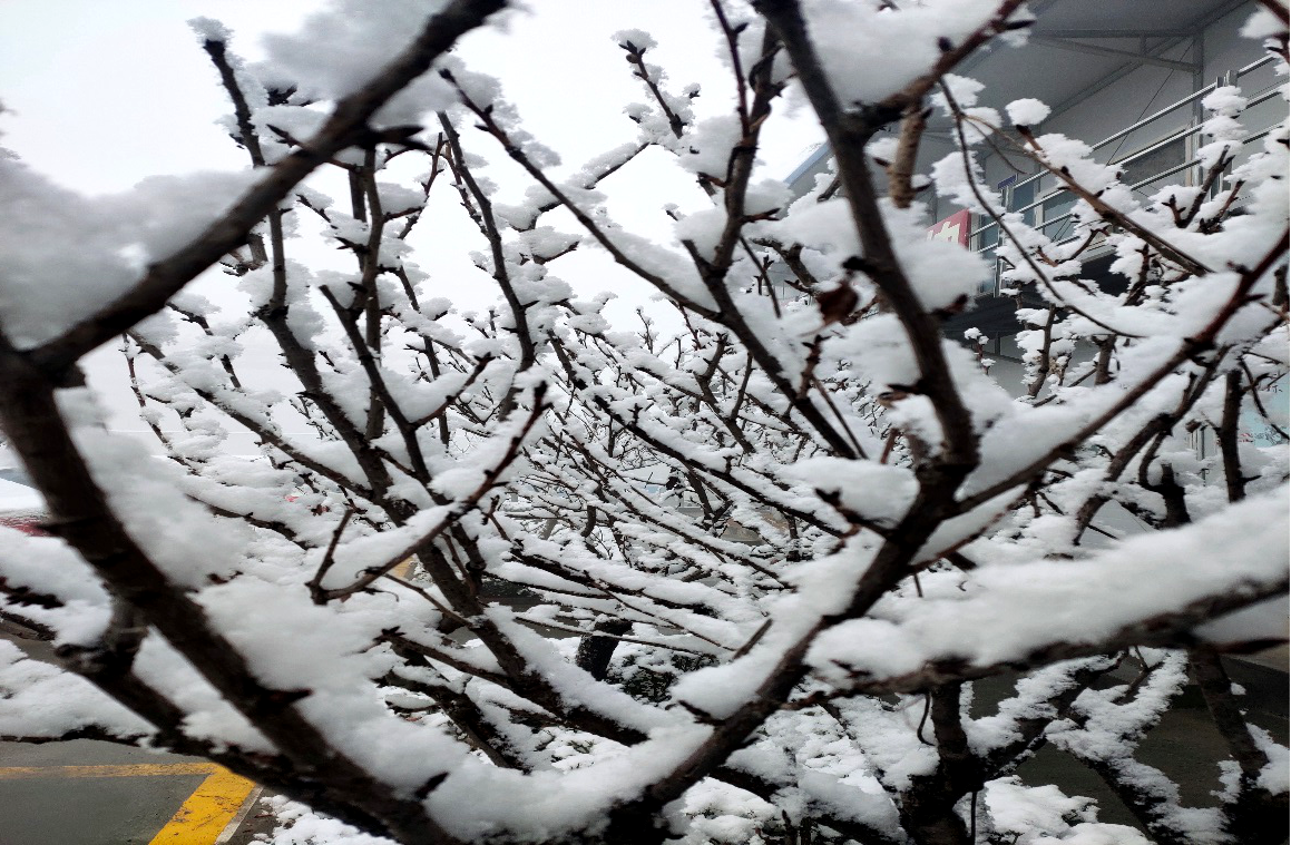 家鄉(xiāng)的雪總是融化的特別快,一上午地上就都是積水了,有的雪薄的地方就會(huì)直接干掉。好像沒(méi)下過(guò)雪一樣。只有樹(shù)上還會(huì)留有一點(diǎn)點(diǎn)積雪。這時(shí)的雪不像之前那么柔軟了,顏色也會(huì)從潔白變成半透明狀,用手抓積雪時(shí),瞬間積雪就會(huì)融化成水從手里流出來(lái)。