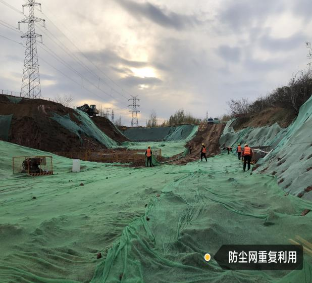 工程進展初期,各個工作面裸土覆蓋成為落實環保工作的一項重要措施。“用量大”、“易損壞”成了防塵網的兩大特點,針對此特點,落實節能增效的理念,防塵網必須做好循環利用、將損壞程度降低到最小化。機械在進入已經覆蓋防塵網的工作面工作時,提前將防塵網卷起集中放到一側;工作面上不再使用的閑置防塵網集中收集、集中存放,以備其他工作面使用,做到循環利用;嚴令禁止各種機械、車輛碾壓蓋有防塵網的工作面,降低防塵網的損壞,從而降低成本。