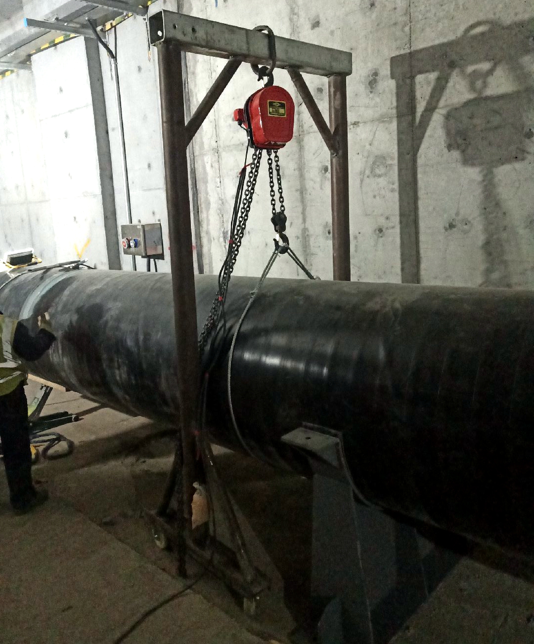 管廊內(nèi)管道采用自行設(shè)計制造管道移動車轉(zhuǎn)運