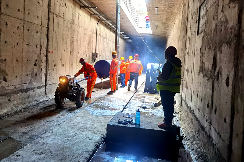 管廊內(nèi)外設(shè)專人調(diào)度指揮運輸管道
