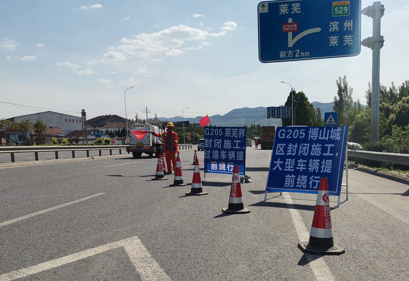 在G205山深線張店、淄川段相繼順利開工后,由第四工程分公司成立的博山分部也于5月18日20:00對G205山深線姚家峪路口-九龍峪路口段開始封閉交通,進行車流導改。