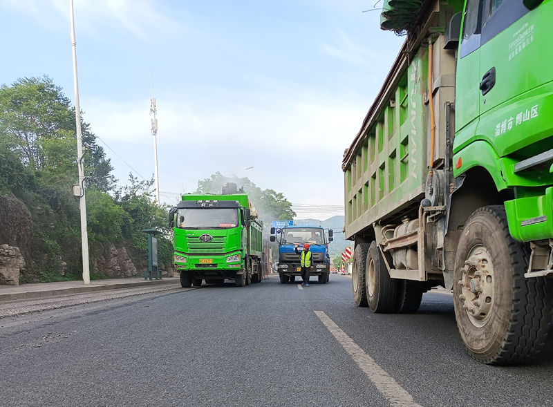 由于G205山深線全線交通壓力大的段落主要集中在博山穿城區部分,我部接到施工任務后,迅速與博山公路中心、博山交警大隊對G205博山境內每一處路口封閉情況進行了實地勘察,優化交通組織,在泉王路口、博山北立交口、焦莊路口分別設置導流點,進行提前分流車輛,經過為期兩天的大型車輛分流提示,穿城區大型車輛明顯減少。