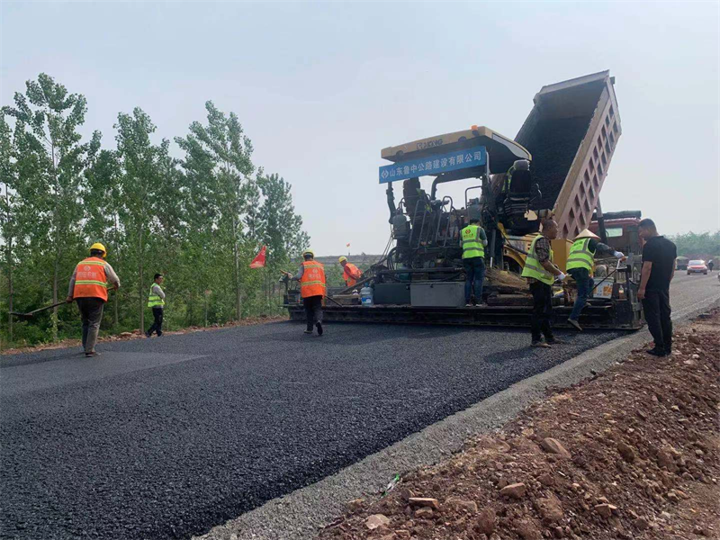 第二工程公司沭河生態路項目首次瀝青混凝土AC-13攤鋪順利完成