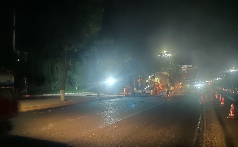 六月,G205博山段的工地上多了一群這樣的人,為了保障白天交通的暢通,他們?nèi)章涠鳎粘龆ⅰS靡粋€個夜晚換來了姚家峪至焦莊段左幅的順利通車。