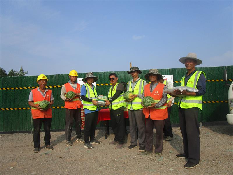“講關懷、送清涼”小組人員從道路小樁號開始依次對路基、橋涵各分部送去藿香正氣水、郎秀礦泉水、綠豆、西瓜、工程項目施工人員安全指導手冊。活動過程中,小組人員與現(xiàn)場人員對工作環(huán)境、工作時間等進行交流,橋涵一分部施工人員說道:“感謝項目部給一線工人送來的防暑降溫物品,送的是清涼,心里卻暖暖的”。