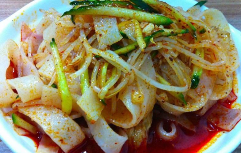 其實涼面有很多種口味,吃法不盡相同,都是涼著吃,因為有的涼面要過道涼水也叫過水面,比較有名的東北延吉朝鮮族冷面,配上牛肉、辣白菜、熟雞蛋,好吃又解饞別有一番滋味。四川的雞絲涼面,配上雞肉絲、四川辣醬,麻辣鮮香,吃到嘴里巴適得很。陜西聞名的寶雞搟皮,秦鎮米皮放上加了芝麻的油潑辣椒和香醋,面黃、油紅看著就食欲大增。西安的麻醬涼皮,新疆的釀皮子,廣東的米粉,也都是各地夏天度夏的涼面品種。四川廣元的蒸涼面更是聞名遐邇,據說是中國歷史上的第一個女皇武則天家鄉人夏天的最愛。
