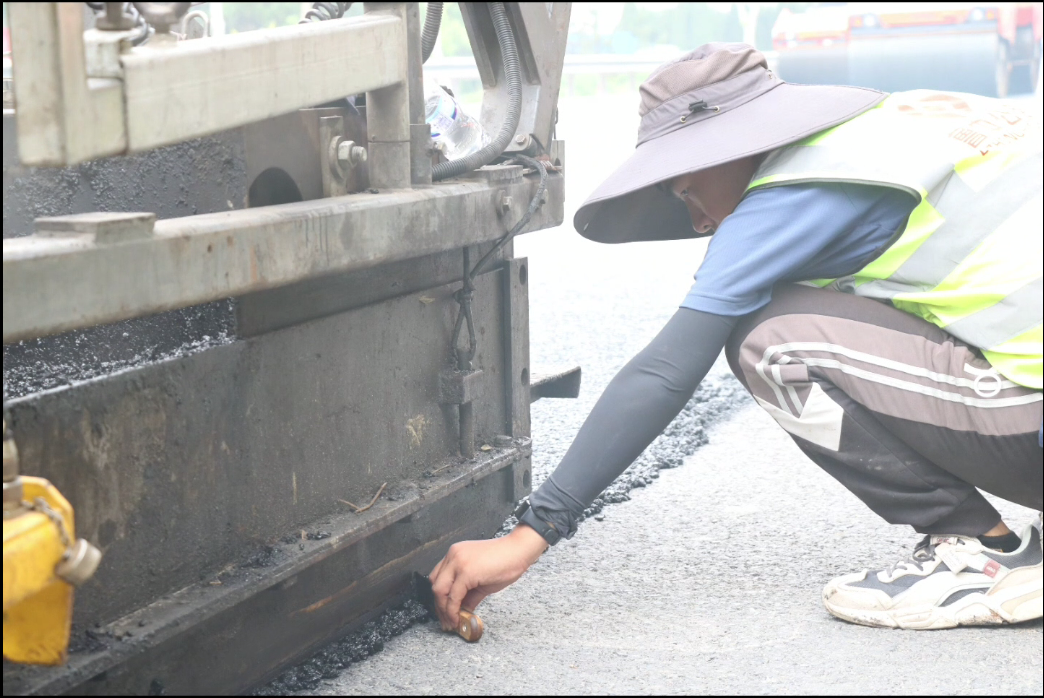 還記得我初次到G205時,正值七月份,是一年中最炎熱的時候,又是項目正大干的時候,直到現在回想起來依然能感覺到那種酷熱難當。看到正在進行瀝青攤鋪,我邁步向瀝青攤鋪車走去,感覺眼前的空間都在扭曲。再看身邊的每個施工人員,臉上都有豆大的汗珠不斷地掉落。施工人員告訴我,瀝青的出廠溫度達到180℃左右,到達路面時溫度也有120℃左右。頭頂是炎炎烈日,腳下是滾燙的瀝青,看著到處都是忙碌的身影,我對他們的敬佩又重了幾分。