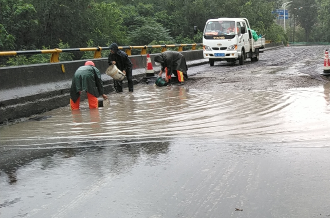 到公司一個多月后,又遇到了“煙花”臺風來襲。受臺風影響,降雨量達到了50毫米-80毫米,局部地區達到了100毫米。公司雖然提前做好了防汛準備,但無奈風雨肆虐,工程的進度受到影響,路邊的樹木被大風連根拔起,有的排水口被垃圾和淤泥堵塞了。風雨中,同事們依然挺立。他們站在齊膝的大水里疏通堵塞的下水口,在大雨里清掃路面的積水和淤泥,他們努力的身影成為最美的風景!