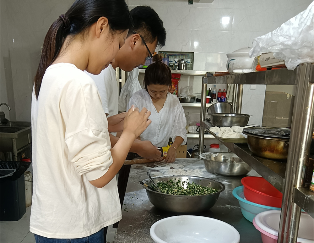 看著一鍋鍋餃子在水里翻騰,誰說不是象征著美好的心情和生活??粗粋€個形態各異的餃子,每個人都體會到了滿足感。當餃子上桌后,在各自的作品點評間,一盤盤餃子很快被大家一掃而空。還有什么比自己辛勤付出后的果實更能打動我們呢?