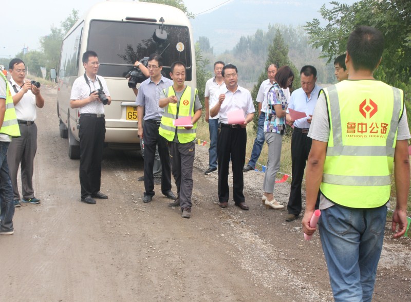 2016年9月6日,沂源縣人大、交通局等領導視察我養護分公司九東路工地,九東路項目經理李眾、項目總工任衍峰陪同檢查。