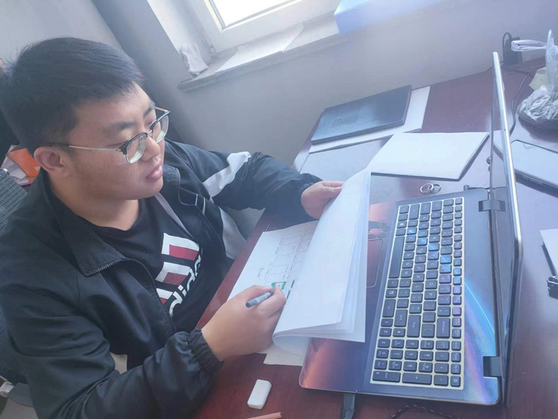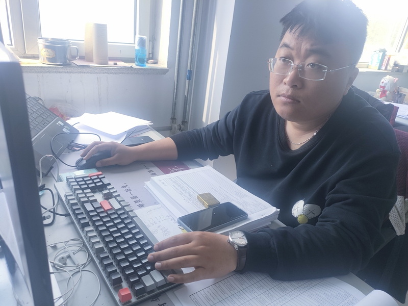 工程計劃部石志翔在做現場施工數據統計