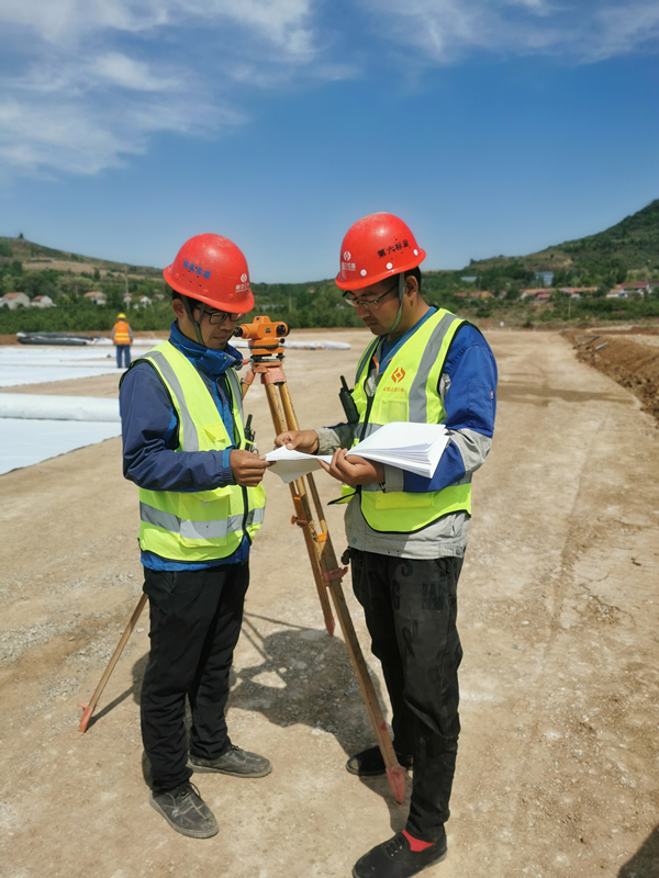 路基四工區西里互通A匝道路基施工(宋衍華與焦守強在核對測量數據)