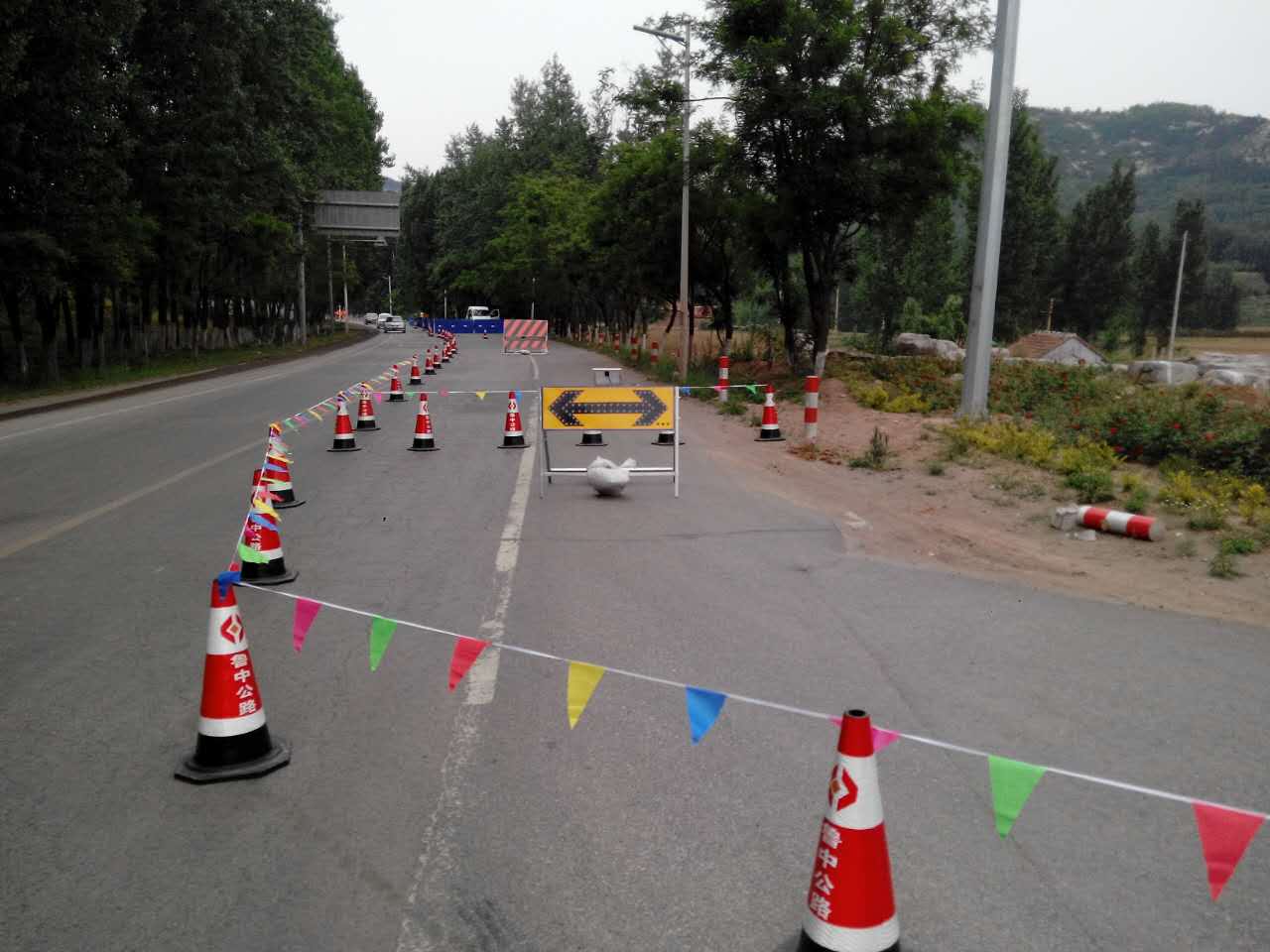 2016年4月29日,總監辦總監簽署開工令,我部迅速按照批復的交通組織方案要求進行路口封閉和標志牌設置。嶄新閃亮的安全錐、警示牌、提示標志牌昭示著施工安全的重要性。