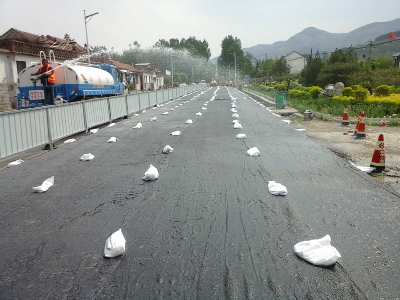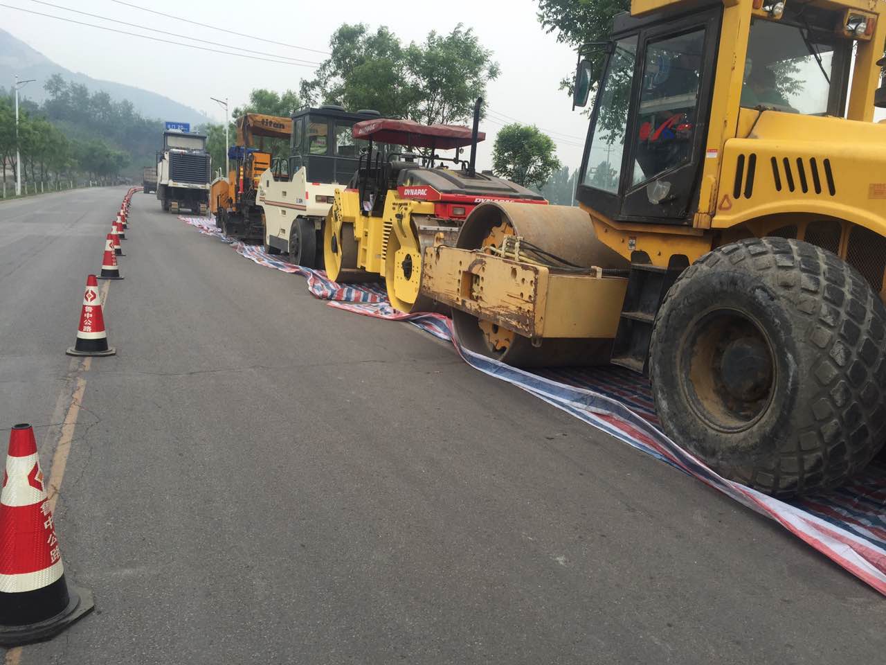 中修段基層覆蓋雙層養生毯并側噴灑水養生。